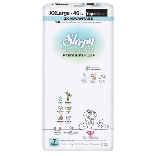 Sleepy Baby Nappies Size 7 – XX Large 20–30kg (1 x 40pcs) Sleepy Bio Natural